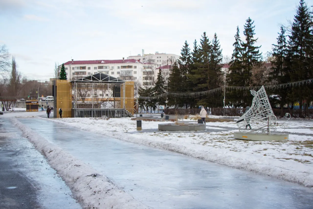 На площади каток обустраивают слева от здания мэрии, на том же месте, что и в прошлом году. В ЦПКиО же ледовую дорожку создают в новом месте — на аллеях в центральной части парка, расположенных за сценой.