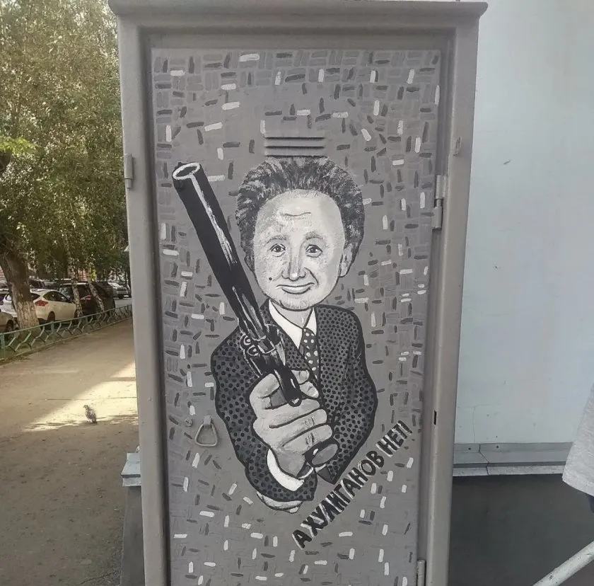 Электрошкафы с изображениями известных земляков появились 7 лет назад. В августе 2018 года на пересечении улиц Куйбышева и Пичугина горожане были приятно удивлены, когда увидели изображение Юрия Гальцева с пистолетом и фразой из его творческого номера «А хулиганов нет!». Позже на ул. Пролетарской, напротив Центрального рынка, был нанесен рисунок с Максимом Фадеевым в образе Нео из фильма «Матрица» и названием песни «Орлы или Вороны», клип на которую Фадеев снимал в Кургане.