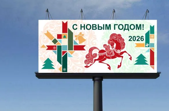 Один из вариантов оформления новогодних баннеров и плакатов в городе.