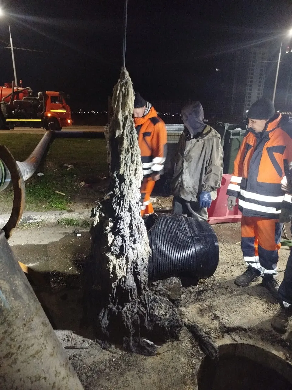 Кадры прочистки коллектора в ЖХ "Снегири". И снова вереницы тряпок. Фото: пресс-служба «Водного Союза»