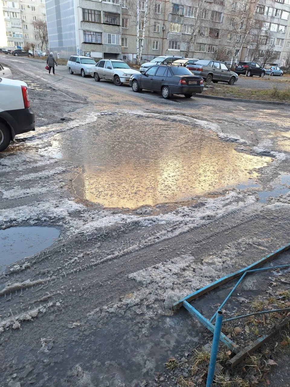 "Летом жильцы 7-го подъезда неоднократно подсыпали самостоятельно данную яму, но это бесполезно, нужно производить ремонт данного участка. На каждый запрос по поводу ремонта дороги Администрация даёт отказ. Ходить и ездить там небезопасно", — пишет местная жительница.