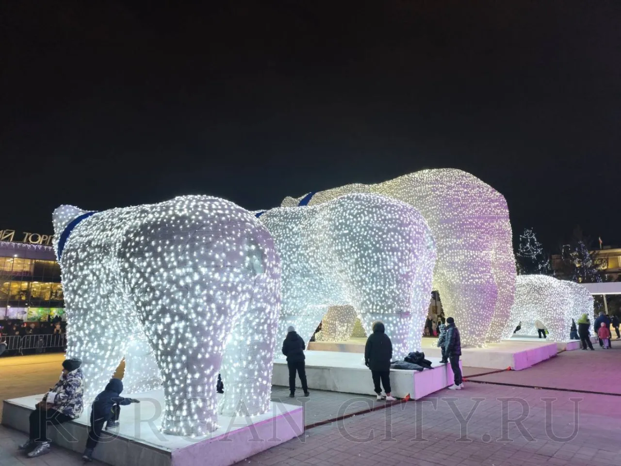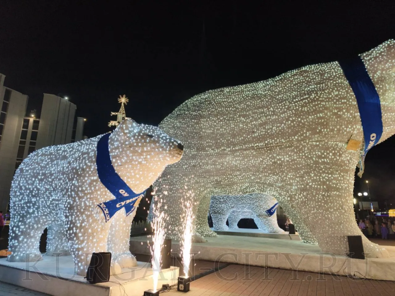 В Кургане зажгли новогоднюю инсталляцию «Белые мишки СУЭНКО»